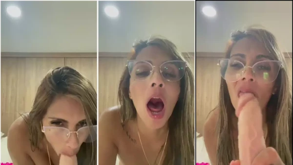 Alessa Piranha con vestido morado masturbándose